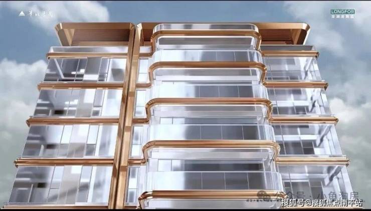 公建化外立面搭配局部香槟金铝板配置超大落地窗,升级奢雅人居体验;