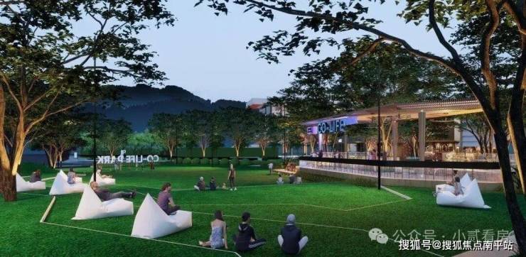 活力阳光草坪:参考日本星野OMO7酒店的设计灵感,打造约1300㎡社交草坪,形成独具特色的坐阶模块,可坐可躺,享受松弛氛围