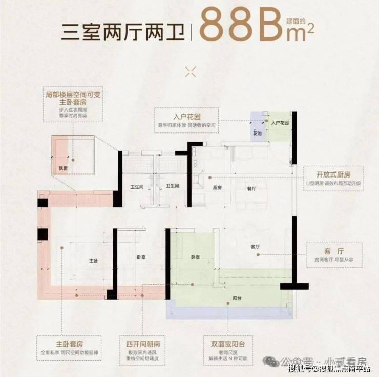 项目更是拿出了14种变异户型,如约77㎡和88㎡,都有A、B设计差异,尽可能满足不同人群的需求。