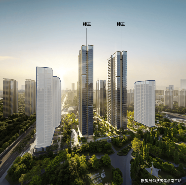 位于组团东侧最佳瞰景位的两栋超高层楼王,位置得天独厚:向内可俯瞰近万方内部中心花园;向外则以最佳东向视角直面城市公园(规划)景观,且远离市政道路的纷扰,静享公园谧境。