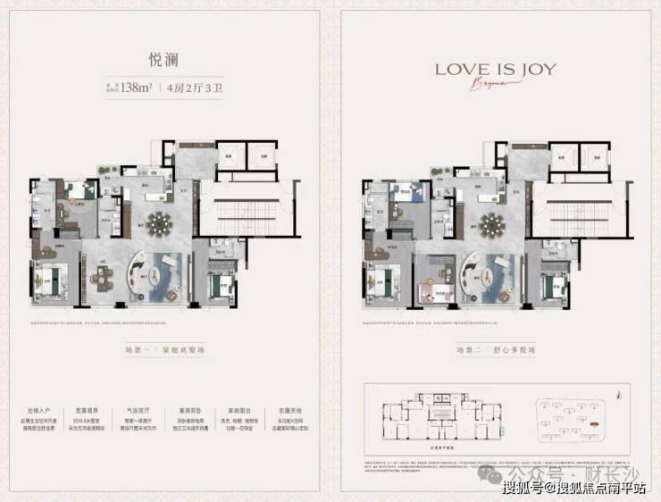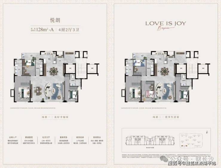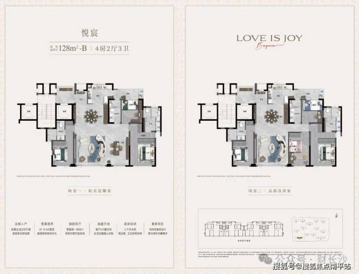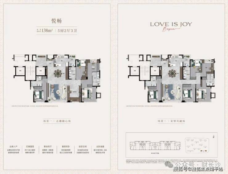 基于对当代菁英家庭改善向往,悦海棠定向研发悦己户型体系,建面约128-172㎡轻奢美学华宅,以X+1可变空间、家庭平权、超容量收纳等创新设计,由外而内,全维擢升精奢质感。
