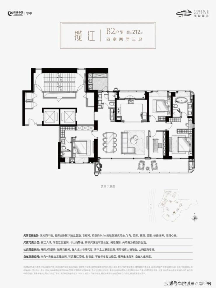 ⭐210㎡四室两厅三卫,400万上车凤起麓鸣绝版户型