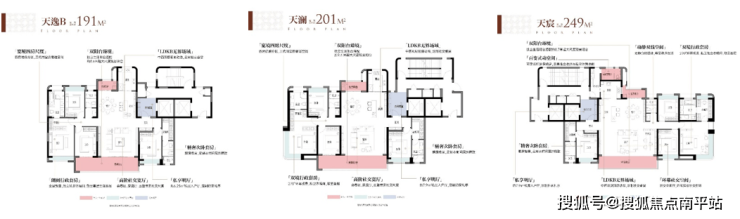户型是江南天境最值得细品的部分。我们以249㎡的五房户型为例: