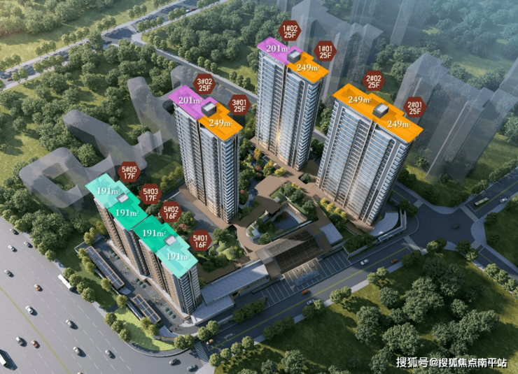 项目总建面约6.1万㎡,只规划了5栋楼,共206户,全部是191-249㎡的大平层。这个“少栋数、大户型、低户数”的组合,是社区纯粹性的物理基础。2.6的容积率在市中心不算低,但19.56%的建筑密度和30.07%的绿地率,意味着建筑占地少,楼间距和公共空间会相对舒适,居住的“透气感”更强。