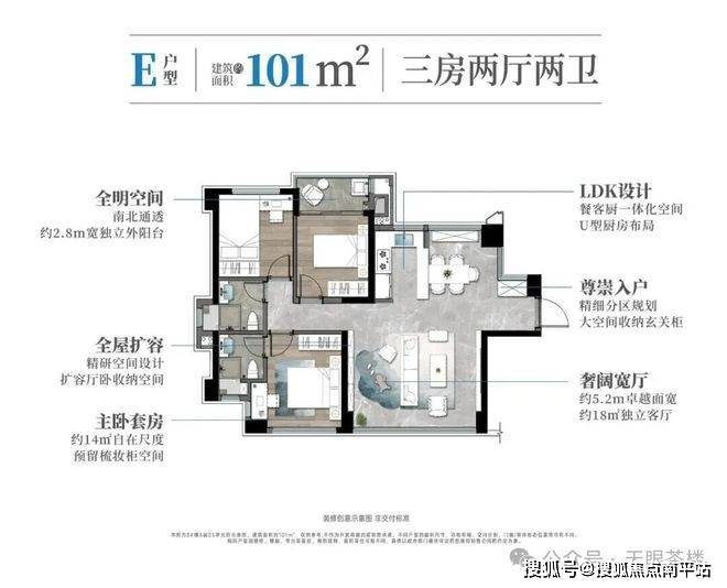 七星湾TOD三期户型,在S墙、L型玄关柜、U型厨房、瞰景布局、窗墙比等方面作了很多优化,加上飘窗可自拓,户型使用率最高能达岛内罕有的约92%。