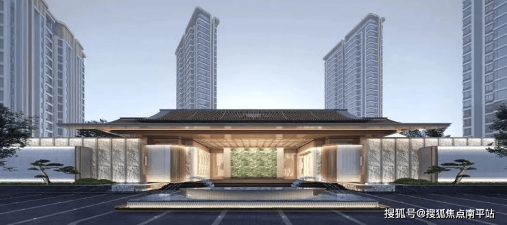 项目以超百米新中式府邸规制(含景墙)开篇,三重威仪景墙搭配星级酒店环岛落客,进口普拉达绿奢石与百年迎客罗汉松相映成趣,让归家之路充满仪式感。