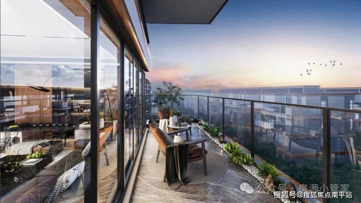 含章锦棠以中式传统园林为底蕴, 强化私人户外专属庭院。从叠拼下层的私属院落,到上层的入户庭院,都强化了私密感并扩展了私家户外生活。而平墅多采用大尺度宽幅阳台设计, 更大幅加大了户型的户外专属空间,让阳台具备了独立私属的院落感,满足对生活“院”望。