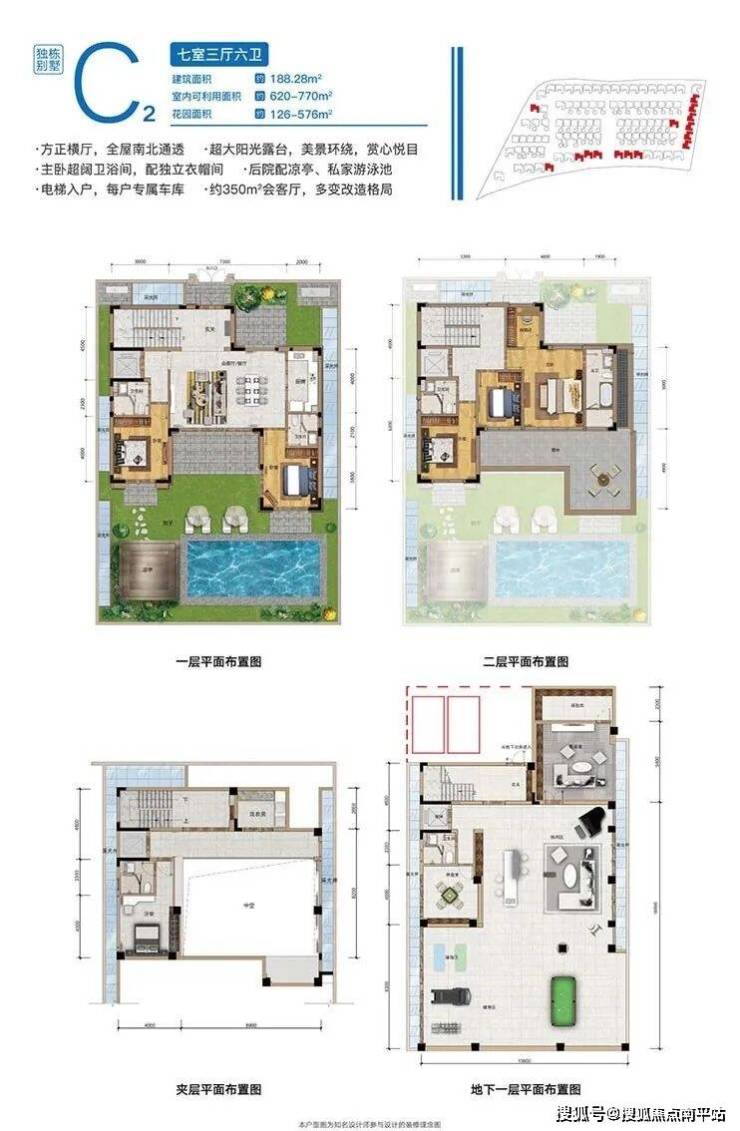 三期康养平墅,双⼊⼾⼤堂,约3.3-3.9⽶层⾼,专属地下⻋位。一梯一户,⼊⼾尊享奢敞花园,超⼤双重观景阳台,自配500㎡私属泳池,另享约2000㎡康悦泳池。