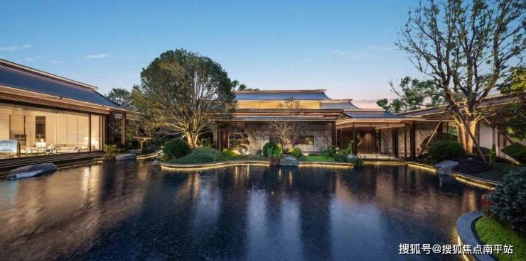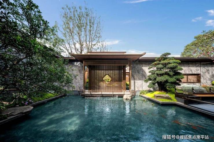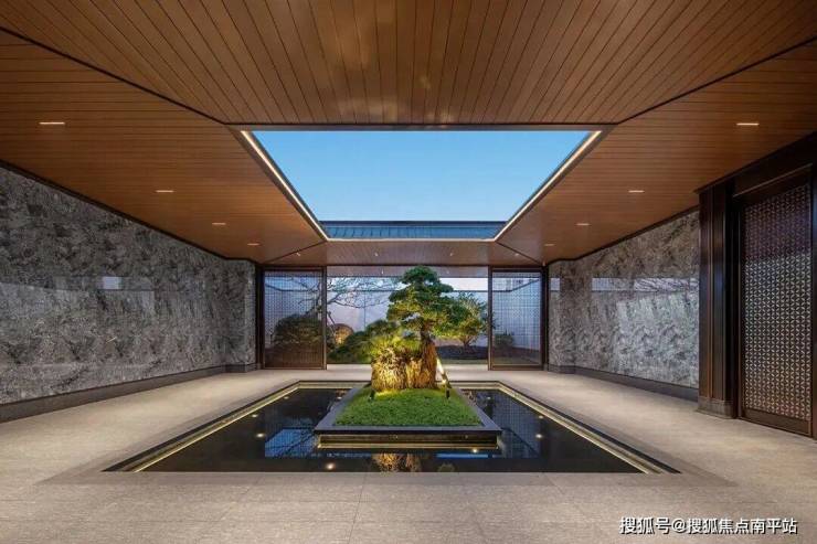 三进院落,呈现 泗水归堂,定制层级屋檐环抱成仪,四方水景中一株松抱石挺秀镇场,既勾勒出聚气凝神的东方意境,更暗藏聚财纳福的美好期许。