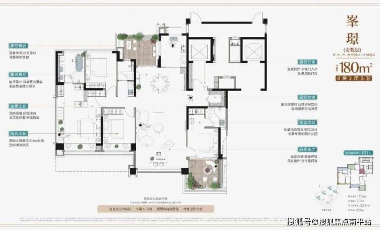 建面约180㎡全空间四房两厅三卫, 空间感可媲美市面约200㎡大平层。