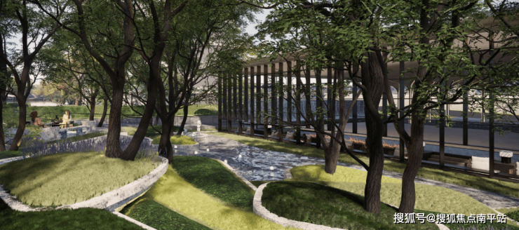 2⃣微风草坪——近550㎡跌中央草坪景观,利用台地高差形成坐阶,拓宽了社交空间;