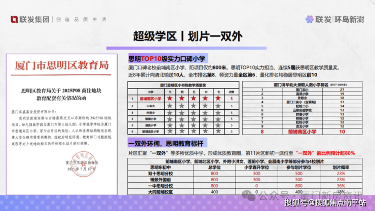联发环岛新澍位于厦门六区之首、最具发展潜力的——思明区东部。这里聚集了软二、观音山营运中心、会展北等高附加值产业区及高能级配套,项目所处的厦门11片区,更是直接 划片一双外。优质的学区(一双外多校划片)+优质的地段(思明东10分钟通勤圈)+极具性价比的价格(岛内新房最低总价)