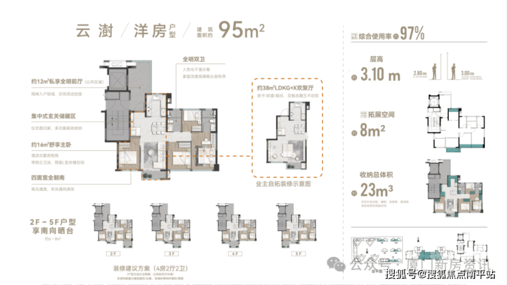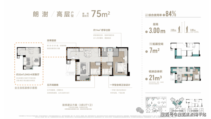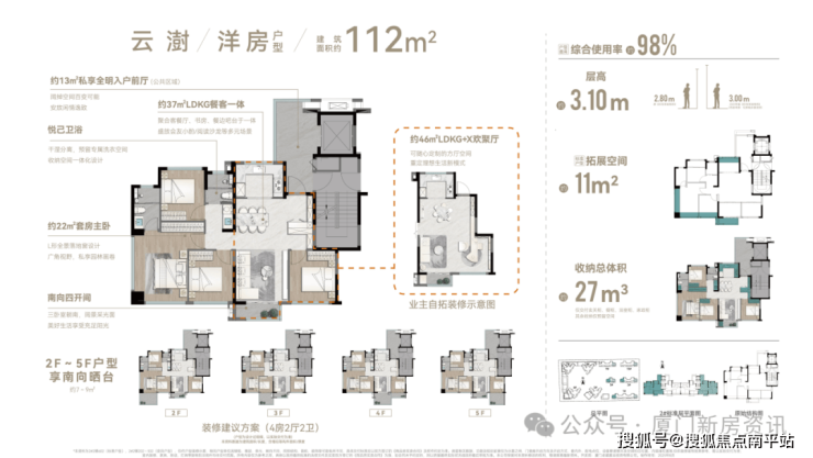 刚需64㎡首开7#楼 仅30套(全盘仅60套) ,层高3米, 得房率85% ,使用面积相当于目前市场上75㎡的户型,客厅卧室全朝南,主卧14㎡带衣帽间,华为鸿蒙智慧+顶配精装,总价 折后280-300万 ,绝对的岛内新房最低门槛!