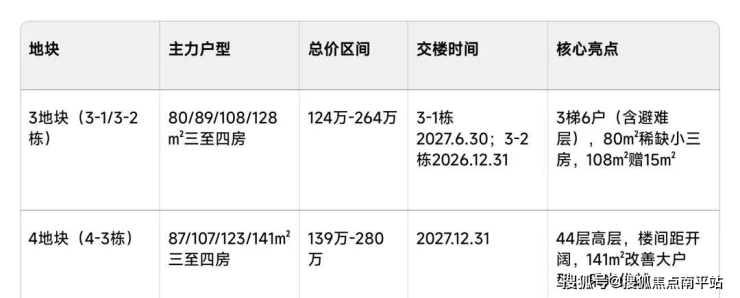3. 3/4地块户型+交楼时间