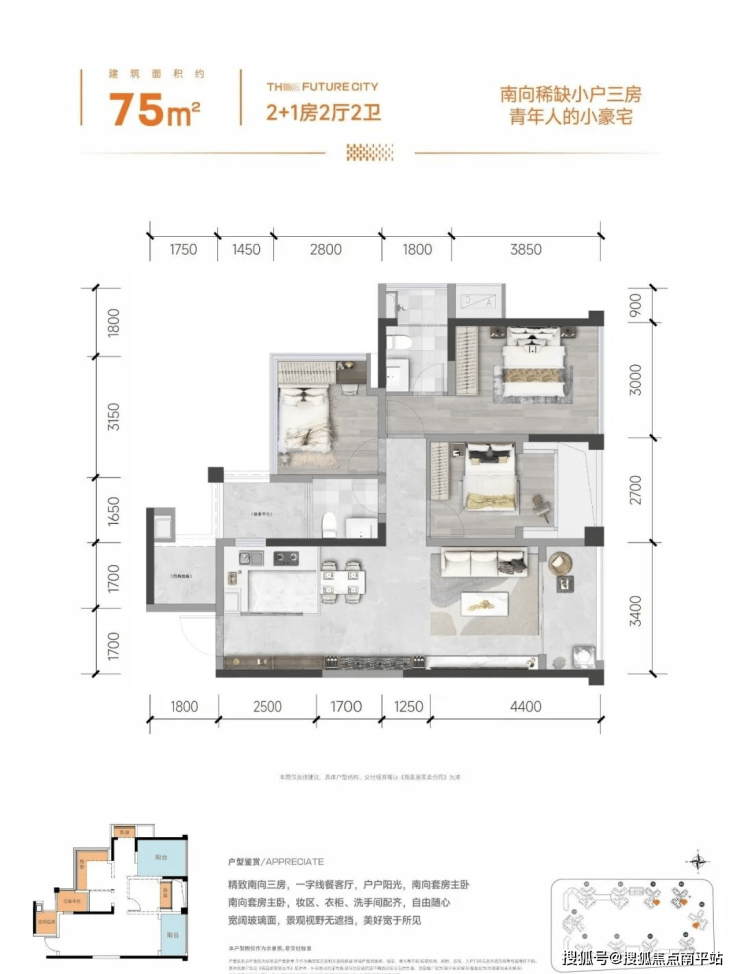 首推东南向稀缺小三房。俯瞰4.5万㎡盛景,低总价低门槛