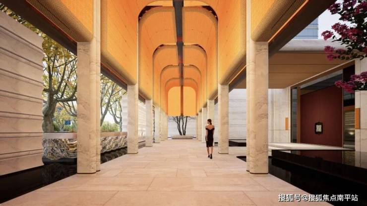 在东侧:地块整体抬高约1米,洋楼区整体抬高约2.2米,结合高层、洋房区首层全架空,搭建一座“静谧高台”,既隔绝城市喧嚣,也让视野最大化