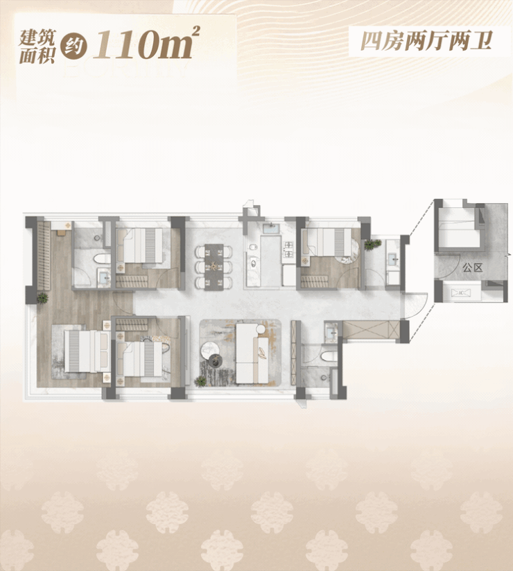 1 建面约110㎡户型,实现一步到位越级享受