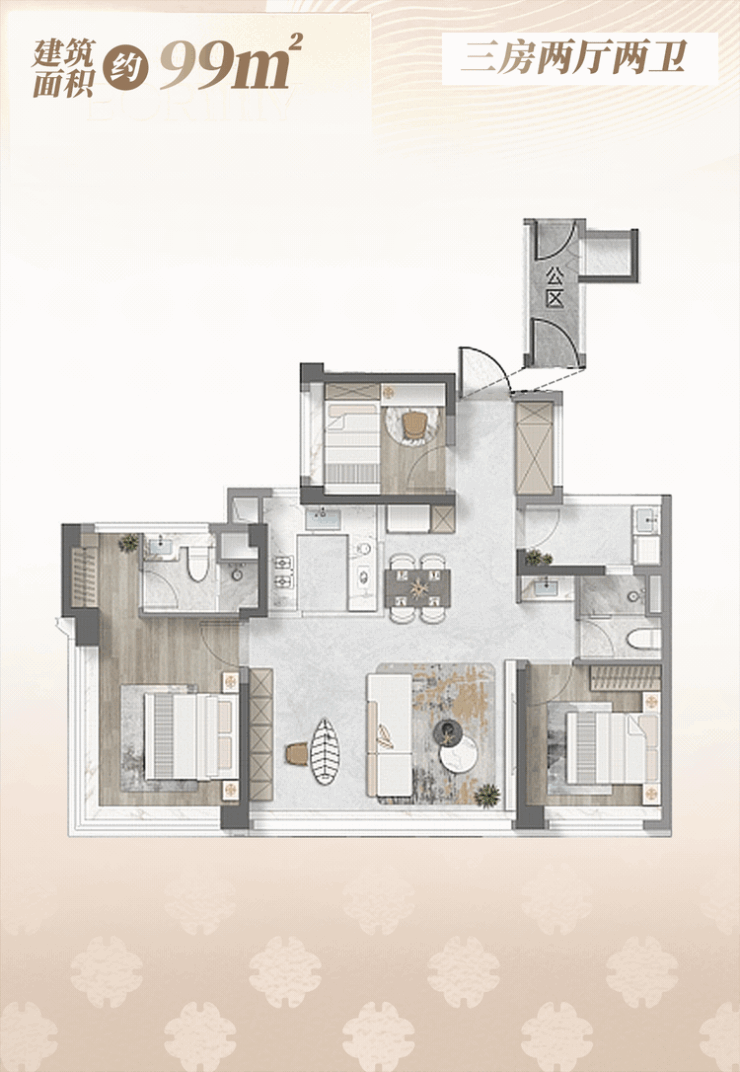 2 建面约99㎡户型,演绎百变生活剧本