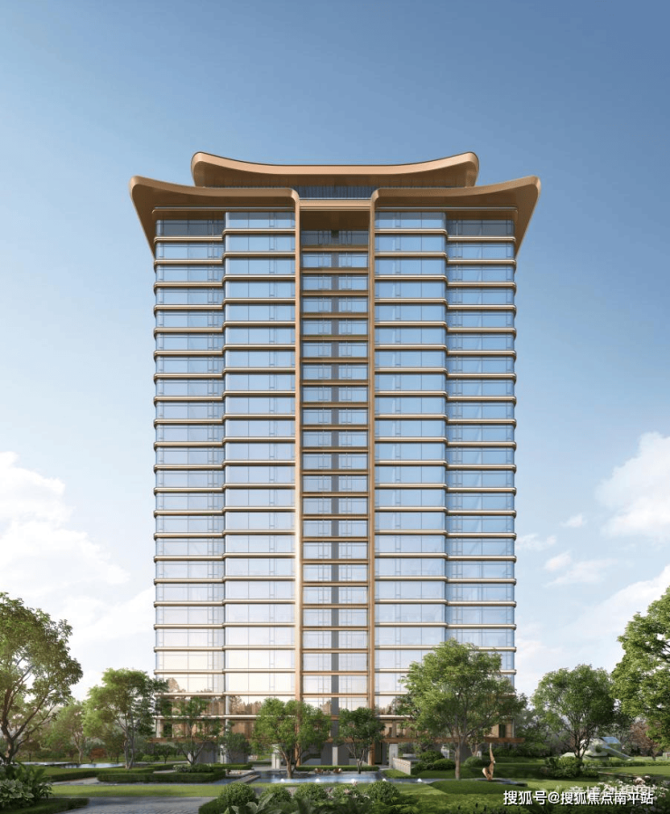 立面方面,约66%窗地比、约60%玻璃覆盖面,标配三层中空夹胶LOW-E玻璃,大量运用铝板、石材、型材等高品质材料,采用0涂感、窄边框、转角无柱等建筑前沿工艺。以曲线柔化建筑边框,消弭建筑与天空的边界,打造全新曲面屏美学立面,整体既具有超流体建筑美学,又保证了绿色低碳的性能表现;