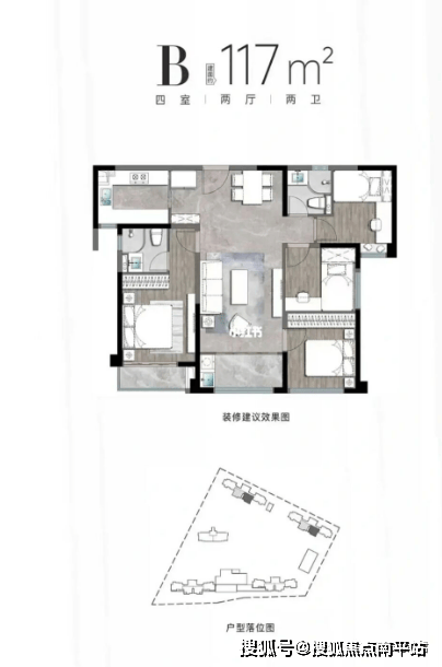 117㎡的四房中间套和137㎡的四房边套,对应湖畔九境的115㎡和135㎡,整体大了2㎡,未来如果湖畔九境卖得差不多了, 这两个户型可以充当补货的角色,否则这两个户型的定价就要比九境低,不然pk不过。