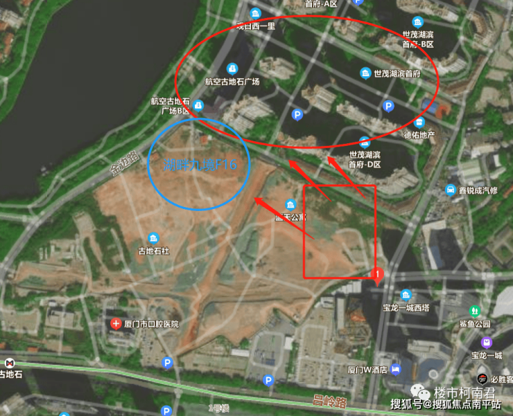 地块西北侧的湖景被湖滨首府的C区、D区,以及湖畔九境最北侧F16地块挡住了,按照目前这个角度,就算能看到湖,也只能称之为“一线湖“,真的是一条线而已。那问题来了,大户型,无景观,意味着没办法拉高溢价,未来这个户型的定价无法给小户型做护城河,难道是为了去抢湿地公园tod同样无景观的198㎡?
