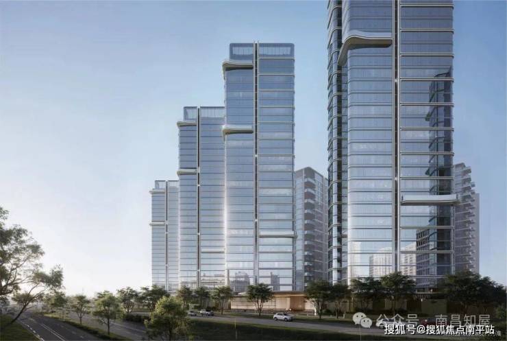 设计双 U 全景舱 + 第四代住宅,临江楼栋为南昌首个 “双 U 全景舱”,270° 环幕视野,三面环幕玻璃,窗墙比极高;内侧楼栋采用奇偶错层,每户带独立空中庭院。