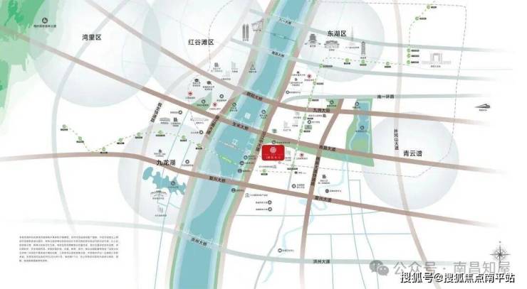 项目位于南昌市南昌县东江路,洪大赣江城西侧约 150 米,一线临赣江,属象湖滨江板块;距地铁 4 号线新洪城大市场站约 857 米,临近沿江南大道、南昌大道、桃新大道快速路。