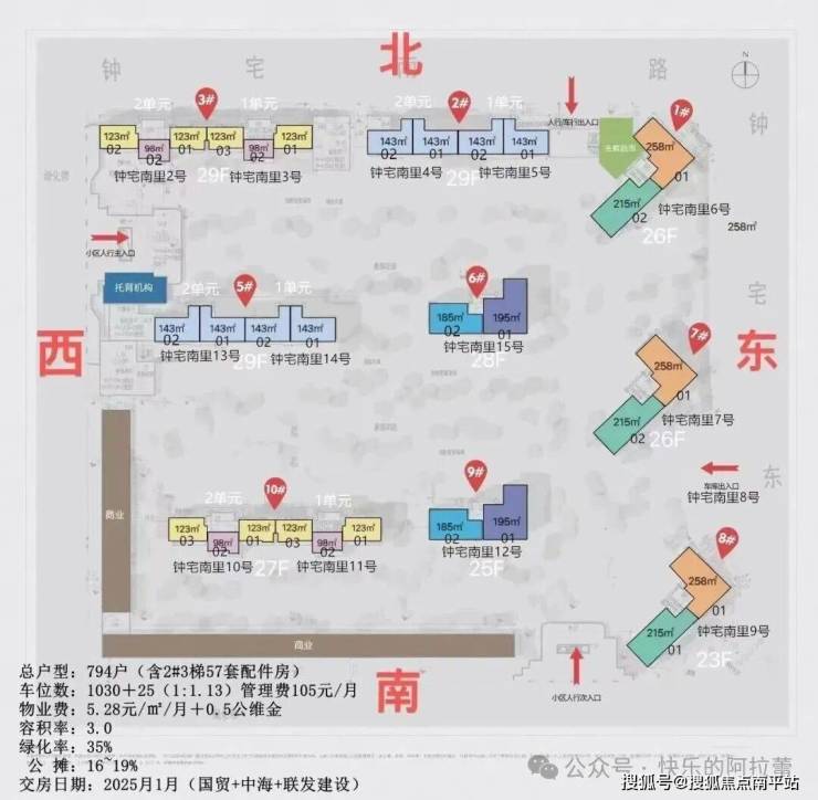 总户数:794户,共9栋,车位:1032个