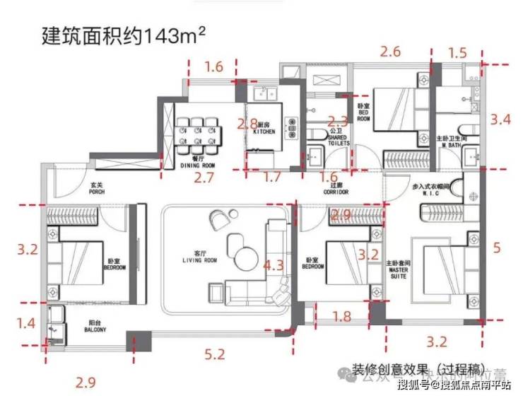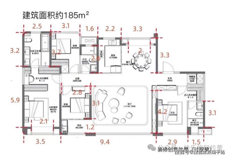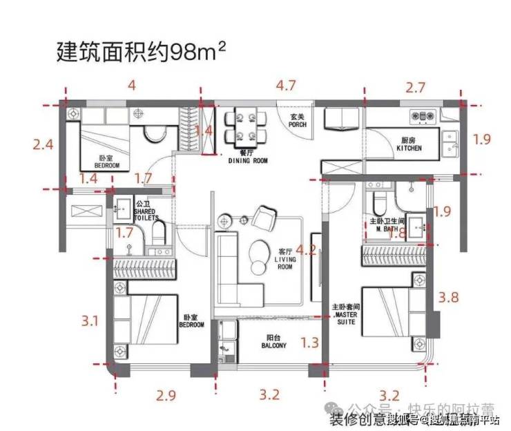 先看98平,3房2卫布局。