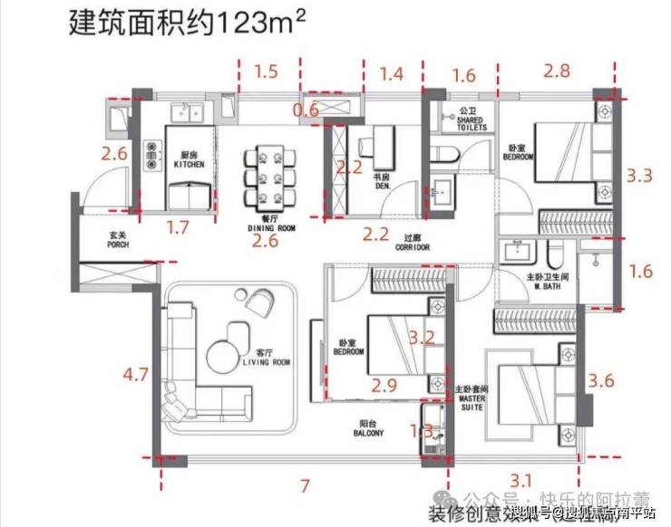 再看123平,4房2卫布局。