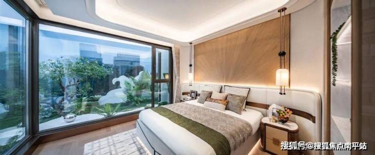 酒店式主卧配置独立卫浴与衣帽空间,忙碌一天后回到隔绝世界喧器的静谧天地,私密尊崇,舒适度与仪式感双双进阶。270°转角窗,大幅扩展风景面,如同星级酒店般的超广角观景视野,营造奢适的居住感受。