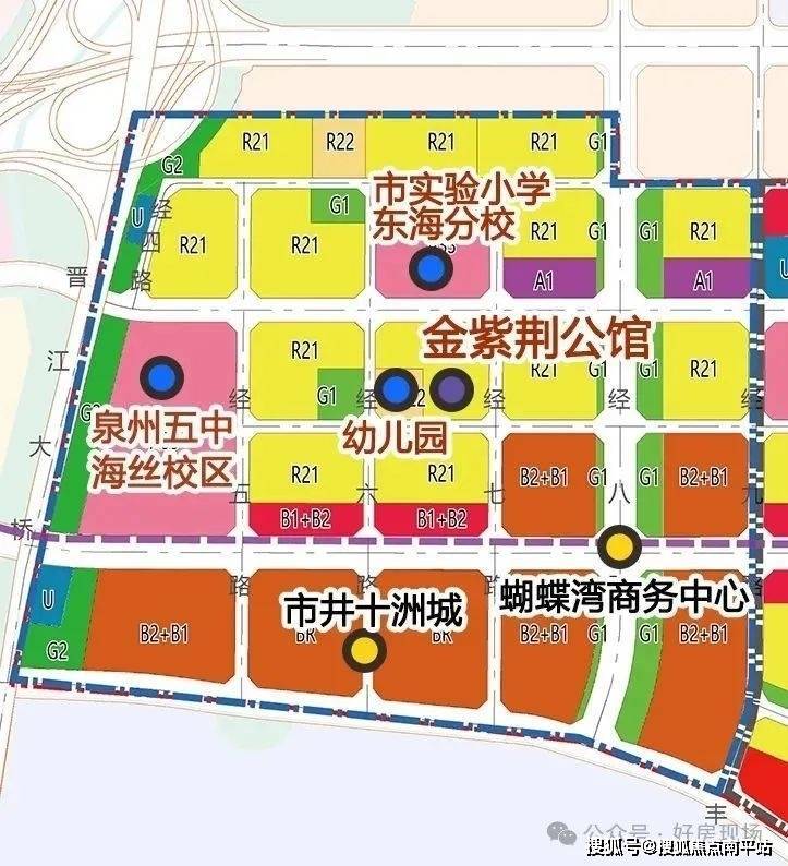①地段-东海中央活力区,项目与泉州市实验小学东海分校一路之隔,一个路口的距离即达在建中的泉州五中海丝校区(初高中一体化完全中学),再加上项目配建的幼儿园,近校优势凸显;此外还临近蝴蝶湾商务中心,高端商务商业配套齐全。