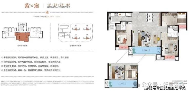 ③产品。当下新房四房起步面积段基本在125㎡左右,但项目建面约108㎡户型却做到了3+1房,性价比凸显。