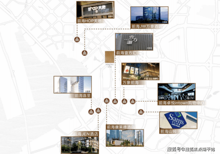 步行1公里可达 山姆会员旗舰店 ,1.6公里至华润前海万象城,1.2公里到龙海商业广场。自驾10-15分钟可达宝中壹方城。周边还有前海壹方汇、卓越INTOWN等商业体环绕。