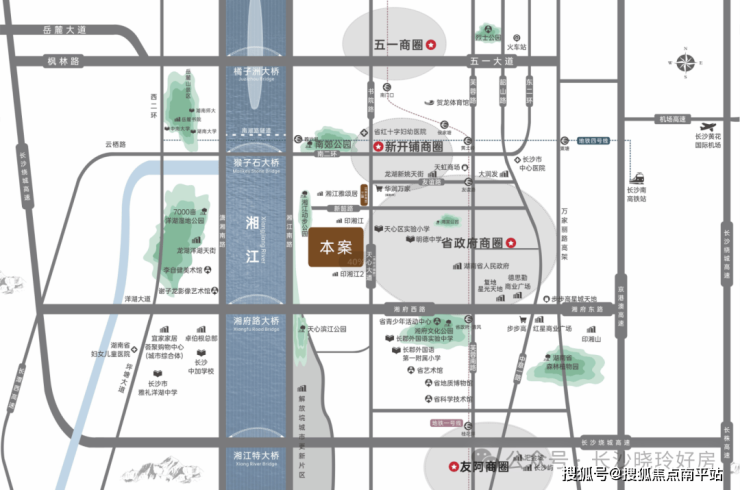项目处于省政府核心区域,南湖新城与南部融城片区交汇处,周边环绕着省政府、天心区政府、省交通厅等23家相关政府机构,是长沙乃至湖南省的绝对政治中心。