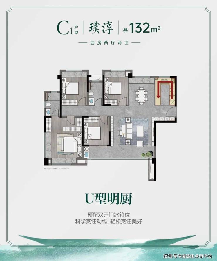 建发璞云建面约132㎡户型装修示意图,仅供参考