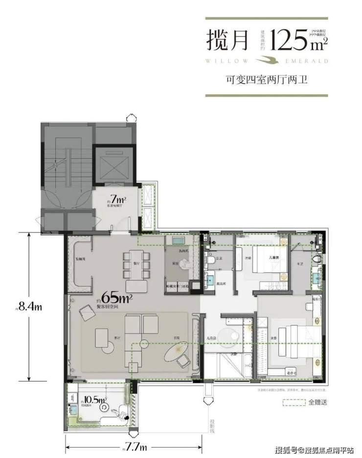 125㎡客厅开间7.7米,“3+1”灵动户型突破了传统户型的局限,以灵活多变的布局,满足你对生活的多元化需求。无论是追求高效的办公空间,还是渴望舒适的休闲区域,还是陪伴孩子快乐成长都可以满足。