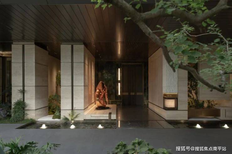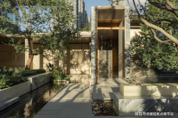 顶部宝格丽金飘板不做多余装饰,只把植物的影子“框”进金属肌理,与水院形成“光影呼应“,连门庭的灯光都按晨雾色温调试,让归家第一秒就撞进自然里。