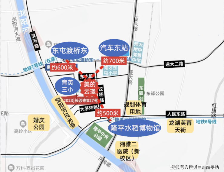 地铁6号线“隆平水稻博物馆”站,距离项目约500米;与7号线“东屯渡桥东”站(在建)相距约600米。