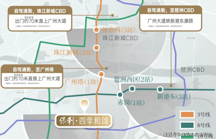 交通:3/8/10/11号线4地铁交汇,1站广州塔,2站珠江新城,3站琶洲西区;出门即广州大道,畅达珠江新城,体育西,琶洲。