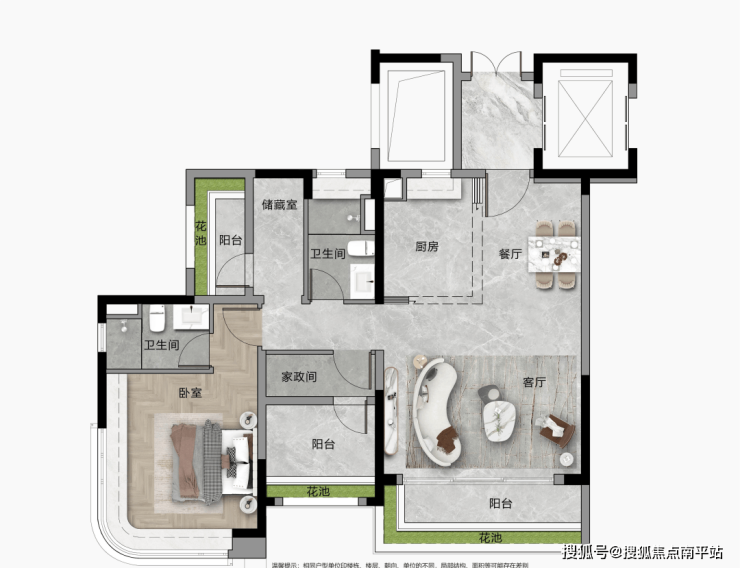 “宽幕视野” 南北通透双视野,主卧270°转角飘窗