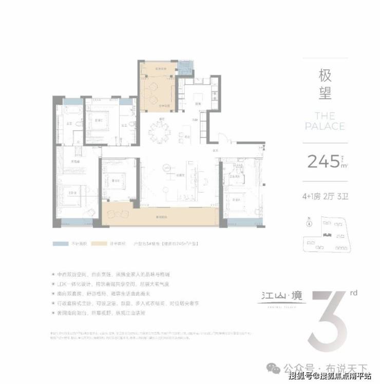 三期3号栋 建面约245㎡王炸户型:首度面世,江山境约70万方大盘里 只有82套,非常稀缺。