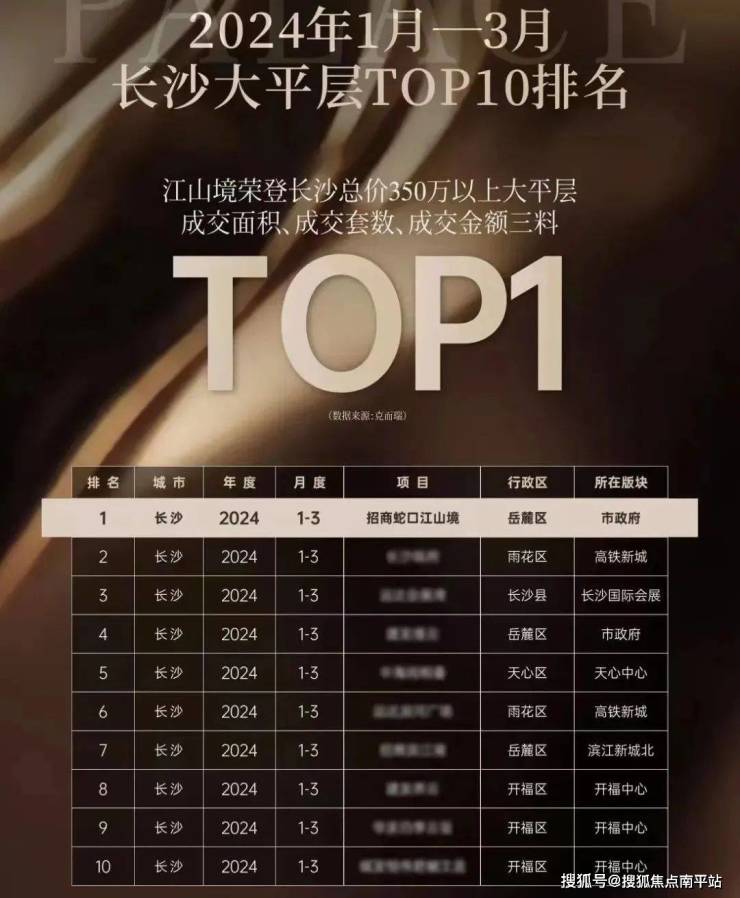 2024一开年,江山境又打出“王炸牌”: 荣膺长沙第一季度成交面积、成交套数、成交金额三冠王!