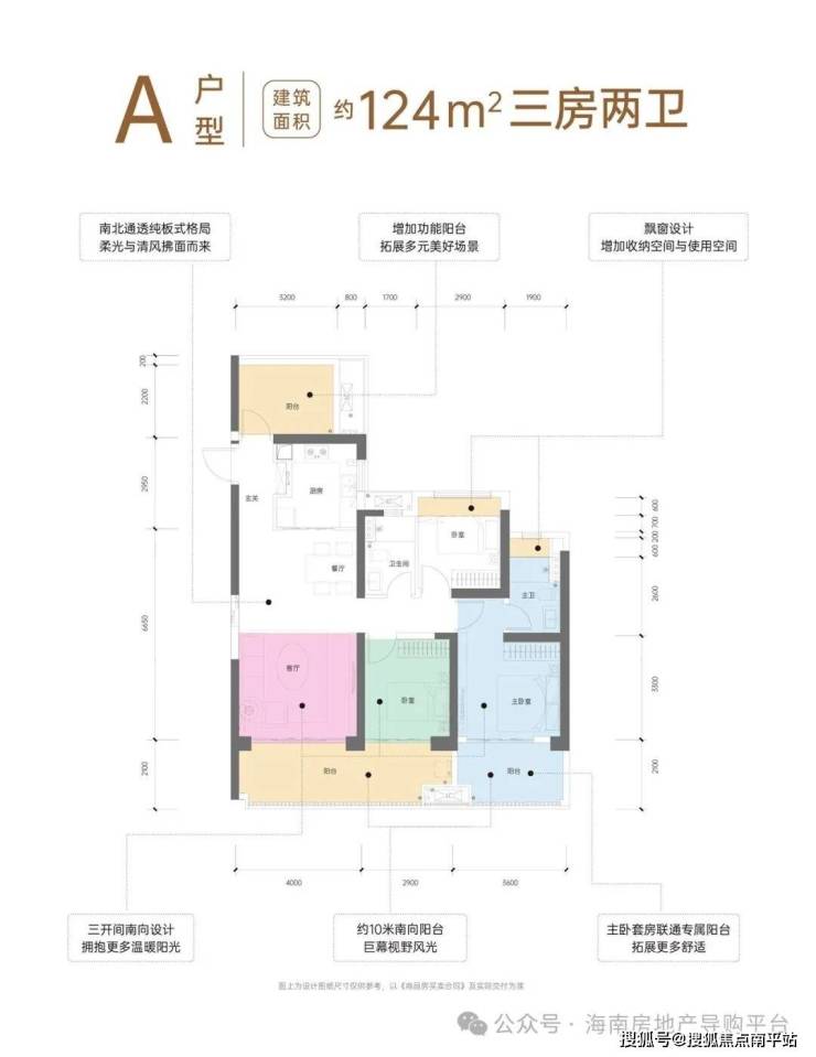 阔景阳台、多飘窗设计,部分户型带多功能阳台;板式方正通透结构,部分户型可达约90%使用率。
