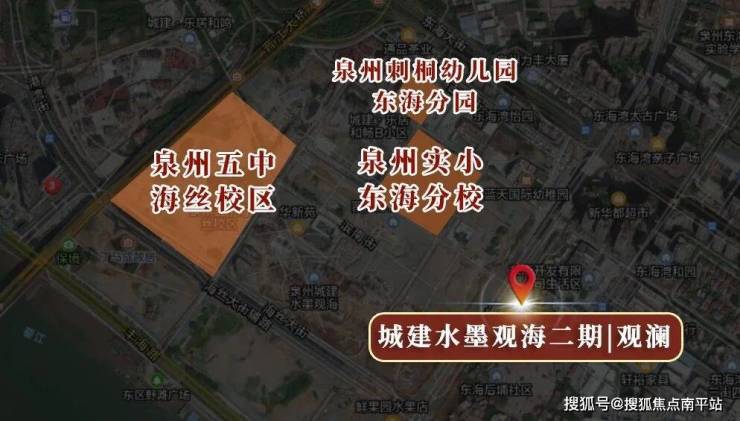 紧邻泉州五中海丝校区(在建,2026年投用)、泉州市实验小学东海分校(2025年9月投用)、泉州市刺桐幼儿园东海分园(2025年9月投用),1公里内集结全龄教育链。(非最终确定消息,以政府实际规划为准。)