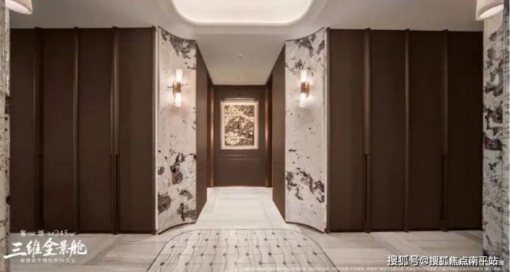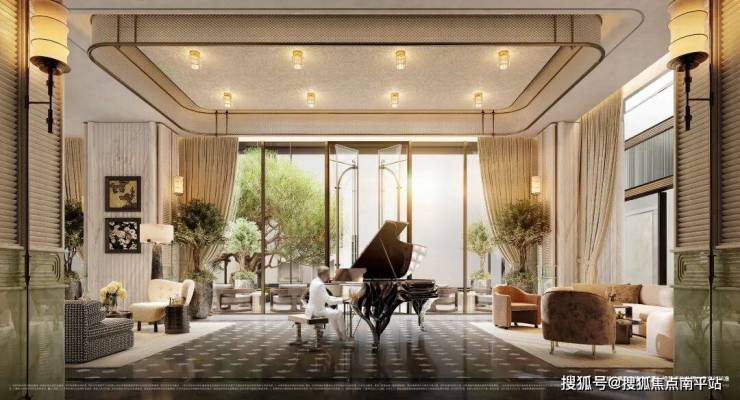 天樾云颂二期的建筑外立面,结合香槟色铝板与大面玻璃,构筑成“全面屏幕墙”。约8.3米高的入户大堂,将归家体验的奢华与尊崇感拉满。
