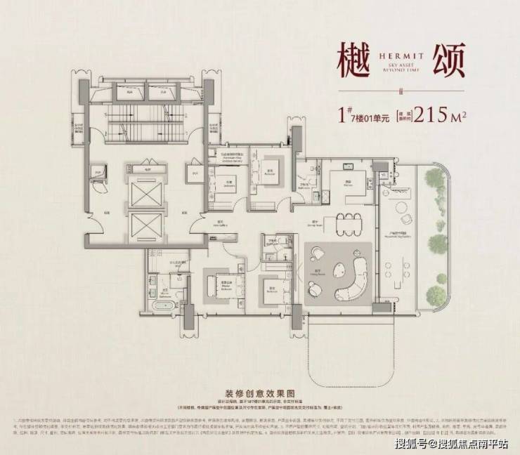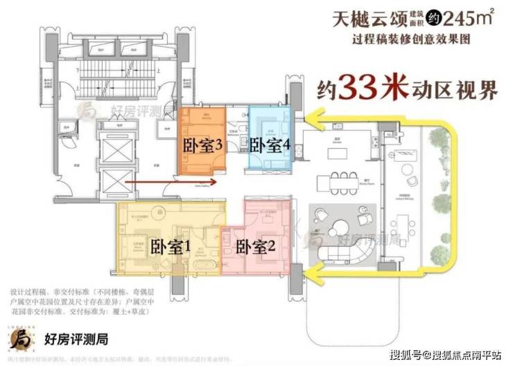 以245㎡户型为例,跨度约11米、进深5米的露台