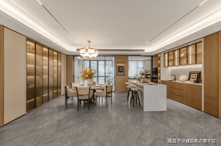 其约94㎡的LDKB一体化奢境方厅,以南山香格里拉酒店为灵感,打造出 “空中度假大堂”般的恢弘气场。