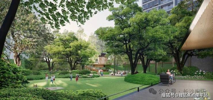 【一环两轴七境】在沿袭当地文化的基础上进行审美升级,以“岳麓书院”为营造灵感,将森林理念注入场地空间,诠释全新绿色栖居。定制“一环两轴七境”园林,规划康体花园、轻氧花园、童乐花园等,让人与人、与自然美好链接。