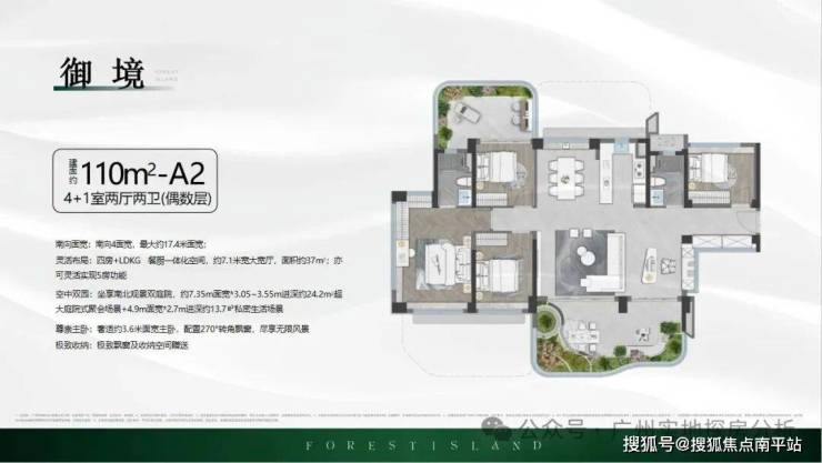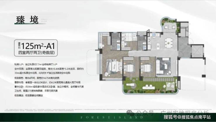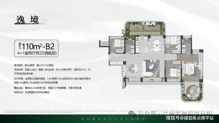 2、产品创新:作为广州首个第四代住宅项目,采用25%阳台占比和40%户属空中花园设计,实用率高达140%以上,部分户型赠送面积不计入产权,实际使用空间大幅增加,如110㎡户型实际使用面积可达153㎡。